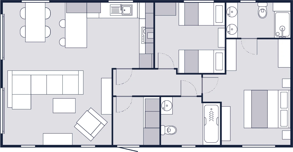 The perfect starter lodge with an expensive feel, the Faraday is the epitome of hugge (pronounced hu-gue) – which is Danish for ‘mood of cosiness and comfort and feelings of wellness and contentment’. Throughout, you’ll see hints of black accents to give the home a boutique, modern feel.